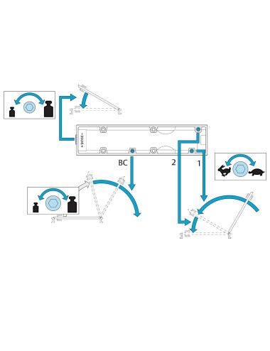 - regulacja prędkości zamykania i zatrzaskiwania oraz regulacja funkcji back-check (zabezpiecza drzwi przed gwałtownym ich otwarciem)